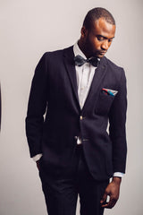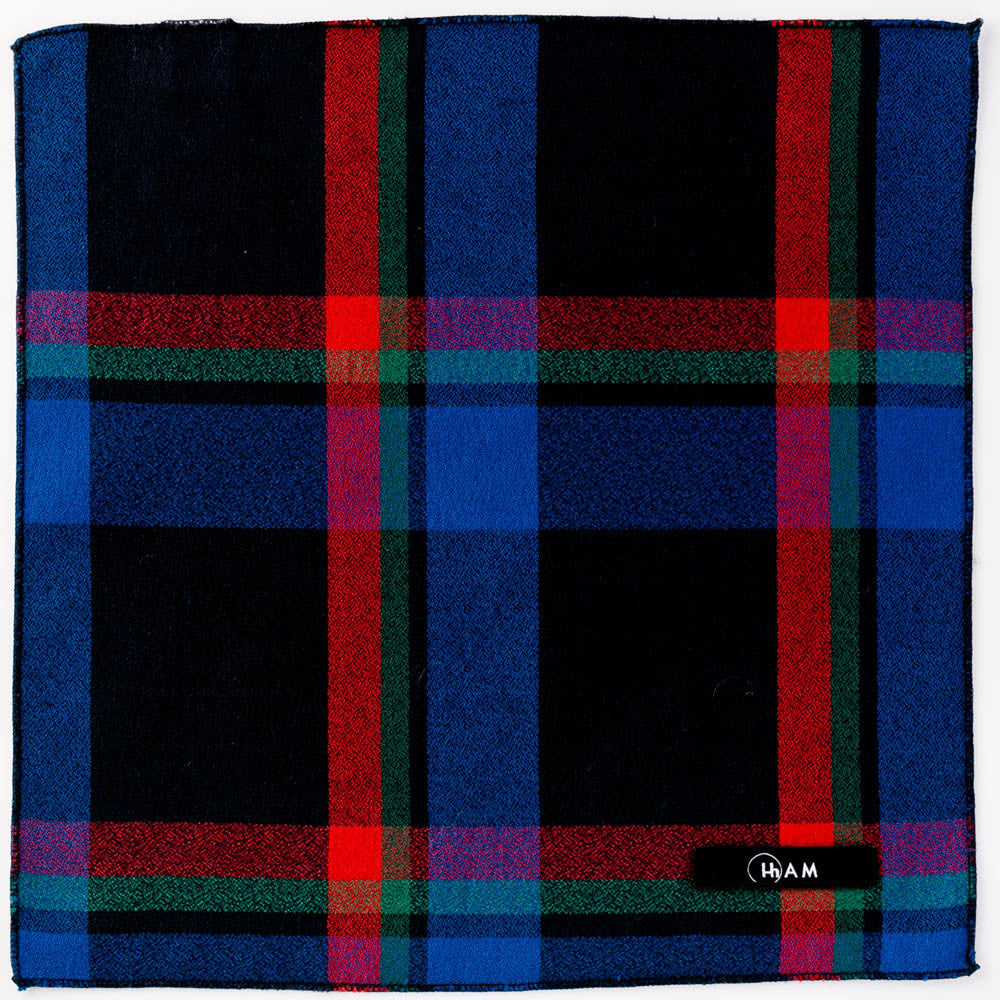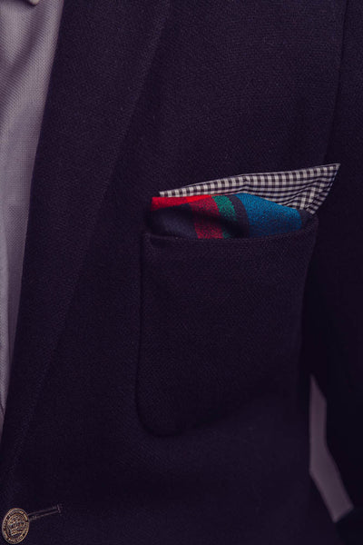 A vibrant plaid print on a strong black backdrop, this crisp silk crepe pocket square treads the fine line between bold and restrained. Draw attention to your choice of its featured colours by pairing this piece with your particular selection of block colour, or wear it with a matching bow or tie made from the same silk crepe plaid. We have you covered whatever your style, from tie to pre tied bow to tie your own bow in both butterly and diamond point style. Add some European sophistication to your look by wearing yours in a trench or overcoat pocket.